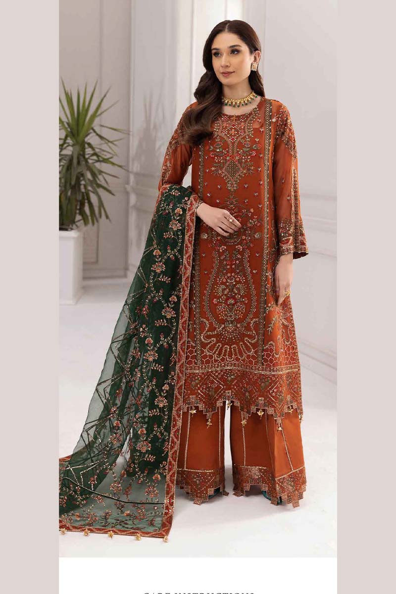 Home Unstitched ALIZEH ALIZEH Rang e Mahr Embroidered Chiffon Rust – V14D02