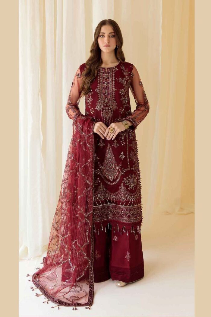 Home Unstitched ALIZEH ALIZEH Rang e Mahr Embroidered Net Maroon – V14D08